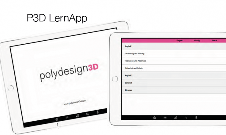 Mit der neuen dreisprachigen Lern-App Polydesign3D ist dies nun möglich. Ab sofort können die Lernenden auf attraktive digitale Weise Fachbegriffe studieren, Aufgaben lösen und Tests absolvieren. Dank der direkten Auflösung der Fragestellungen erfahren sie jederzeit ihren eigenen Bildungsstand. Die App umfasst diverse Bilder und Filme zur Veranschaulichung. Sie steht für iPhones und Android-Geräte zum Download bereit.