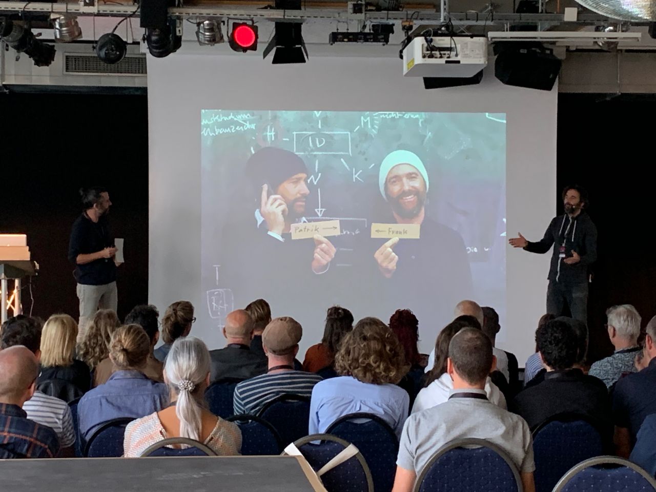 Ein Highlight des Tages bildete der nächste Programmpunkt – die Riklin Brothers. Doch wo waren sie bloss? Die Querdenker liessen auf sich warten, jedoch gehörte dies bereits zu ihrem Auftritt. Die Zwillinge Frank & Patrik Riklin mit ihrem klein-künstlerischen Unternehmen "Atelier für Sonderaufgaben" verfolgen das Ziel, unabhängige und kompromisslose Kunst zu produzieren und Sonderaufgaben wahrzunehmen, für die sich niemand so richtig zuständig fühlt. Mit dem Projekt und der Schaffung der Marke "Null Stern Hotel" erreichten sie im vergangenen Jahr internationale Bekanntheit als Konzeptkünstler. Ihre Präsentation «Der Marktplatz und die Felder der Zukunft. Drei Stufen zum Glück» begeisterte die Zuschauerinnen und Zuschauer sehr und erntete auch grossen Applaus.