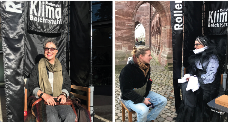 Oft teilen die Besucherinnen und Besucher nicht nur ihre Klimasünden, sondern das, was sie gerade beschäftigt – von Familiengeschichten bis zu Alltagsproblemen. Das stört den Performance-Künstler nicht, obwohl «Klima-Beichtstuhl» in grossen Lettern auf dem schwarzen Turm steht. Er hört zu und fragt nach. Und er bringt die Neugierde und Offenheit mit, die man braucht, wenn man Menschen einen Raum geben will, ohne schon vorher zu wissen, was darin passieren wird.